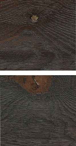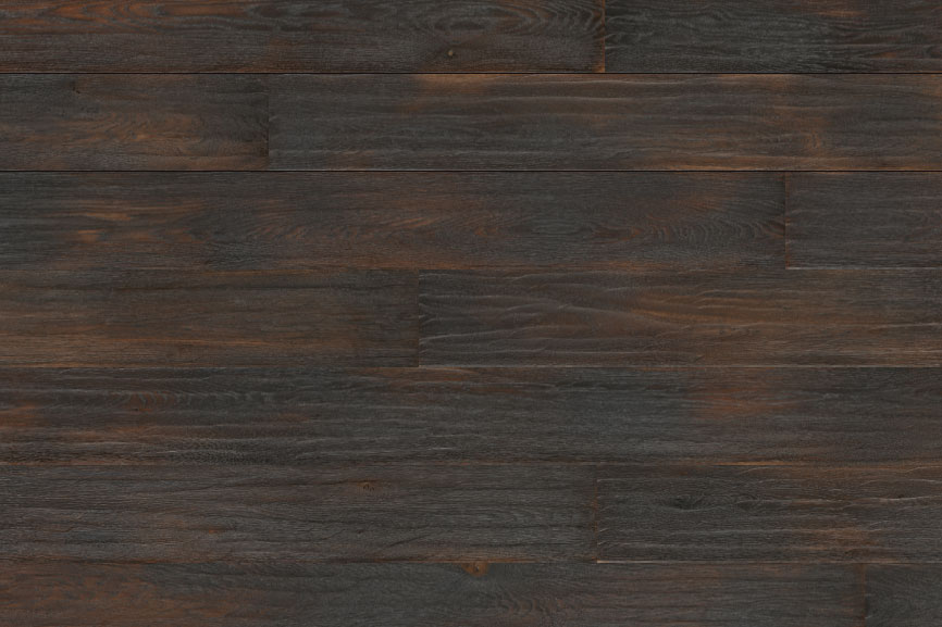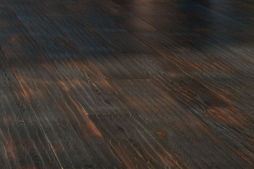 You ask what that artist's unease is, that I feel. It is a constant search. The tension-filled expectation of great inspiration which will result in a "work of life" being created. But when it comes I'll be ready. Like a seasoned magician I'll don a black cloak and leave the world immobile in magic enchantment. The floor owes its intriguing appearance to superficial manual burning of the surface, which results in the interesting colour scheme ranging from black to golden shades of brown. The distinctiveness of the boards is emphasised by hand planing and bevelling. Traces of use are imitated by deliberate scratches, dents and minor holes, characteristic of Tudor-era boards. Floor additionally protected by natural oil.
